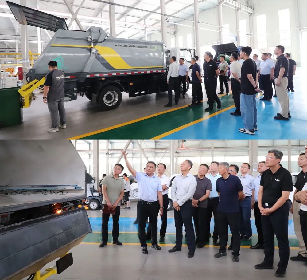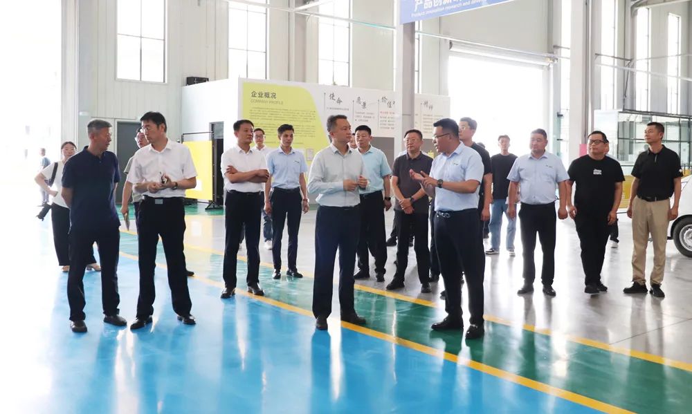 6月23日,济南市长清区区委书记肖辉、区委常委办公室主任刘兴文、区委常委副区长赵鲁及各相关部门领导莅临巨能智造产业园区,深入山东百易智能装备股份有限公司新能源环卫车总装车间现场指导交流。巨能集团董事长周文东、山东百易智能装备股份有限公司董事长刘金东做现场介绍。