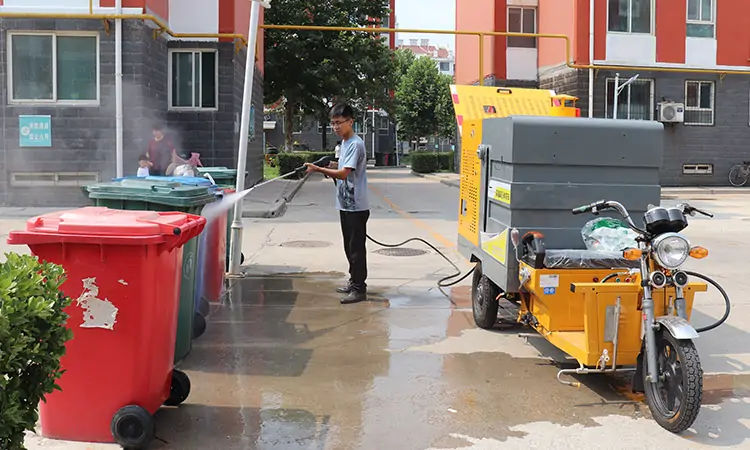 可以用这款冷热一体高压清洗车,该车在原有的高压清洗车的别配基础上增加了高温加热炉,升温快速操作简单,可以有效,高效的清理地面油污,重油污,修车厂地面油污,人行道地面墙体小广告等,一键升温,可以大大缩短环卫清洁使用的时间,而且车辆均采用品牌配件,经久耐用,三轮形态的车身,让车辆大大提升了适应能力,让车辆在任何形态的路面都可以行走自如。