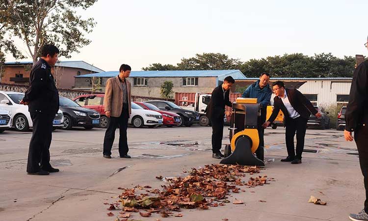 现在进入深秋,道路落叶清理问题提上日程。这款手推式吸叶机能派上大用场,既能提高环卫保洁效率,还能大大减轻环卫工人的劳动强度,是环卫工人的好帮手。刘总陪同城管局领导参观了这款设备的作业演示,对于地面成堆的法桐树叶,清理收集效果明显,城管局领导连连称赞。