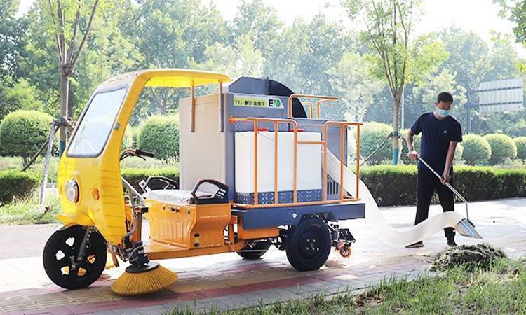 百易长青小型吸树叶机器,是一款以一体弯梁三轮车底盘,新能源电池动力为基础下装的树叶收集设备。车辆上装采用不锈钢外壳车身,左侧装有两个滚塑水箱用于扫刷的抑尘喷水,右侧则是垃圾袋放置区域,后方则是工作发动机所在位置,也是吸盘与手持软管的更换区域。