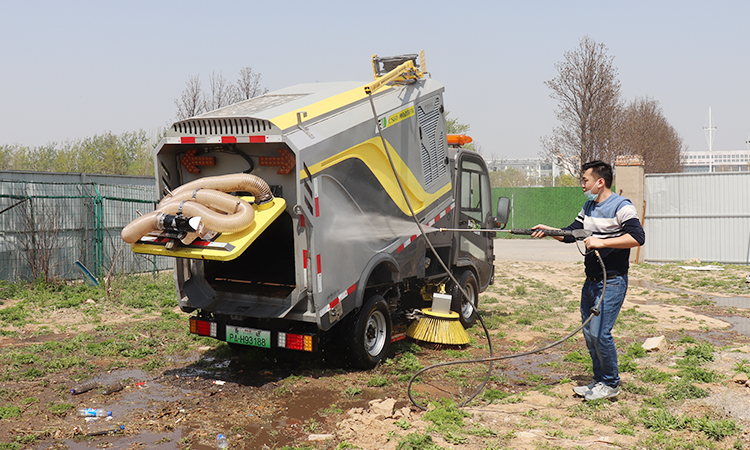 这款小型电动洗扫车还装配有延长机械摇臂,可以将高压水枪水管轻松跨过路边停放的车辆,直达人行道,对人行道进行清扫,不留卫生死角。同时它还装载有吸尘吸管,可以手持操作,高效吸收绿化带落叶、垃圾,一车多用,清洁高效,非常适合与大型清扫车协同作业,对辅路综合清洁使用。